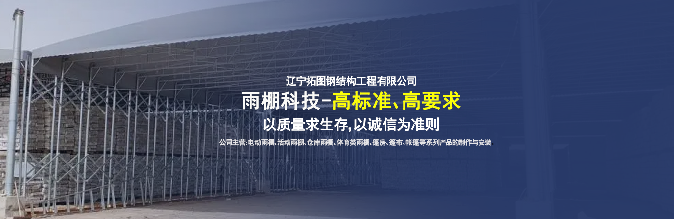 遼寧拓圖鋼結構工程有限公司是一家專業從事推拉篷設計、制作、安裝、使用、維修的綜合性公司。公司主營:電動雨棚、活動雨棚、倉庫雨棚、體育類雨棚、篷房、篷布、帳篷等系列產品的制作與安裝?! ?nbsp; 遼寧拓圖鋼結構工程有限公司堅持以市場為導向,以科技創新為動力,以質量求生存,以誠信為準則,倡導求實、進取、創新的企業精神?!翱茖W的管理、嚴謹的設計、 的制作安裝、嚴格的質量檢測、良好的后期服務成就企業的信譽,為您提供優質服務?! ?nbsp; 遼寧拓圖鋼結構工程有限公司傾力于開發應用三維空間結構與新材料的結合,將廣告藝術視覺表現形式與張力膜材科學的結合,推出多彩推拉蓬,依靠先進的科學技術,將推拉蓬建筑表現形式無限延伸,立志走在建筑科學的前沿,引導建筑時尚潮流,我們的目標是使推拉蓬建筑在中國發展壯大?! ?nbsp; 遼寧拓圖鋼結構工程有限公司憑著極強的事業熱情和豐富的專業經驗以“勤勉進取、銳意創新、至誠至信”的精神使公司得到迅速健康發展,業務范圍遍及全國。科學的管理、嚴謹的設計、高標準的制作安裝流程,嚴格把控產品質量,熱誠的售后服務是企業競爭力的源泉?! ?nbsp; 遼寧拓圖鋼結構工程有限公司人愿以最誠摯的態度,歡迎廣大客戶的蒞臨與溝通!愿為市場提供優...